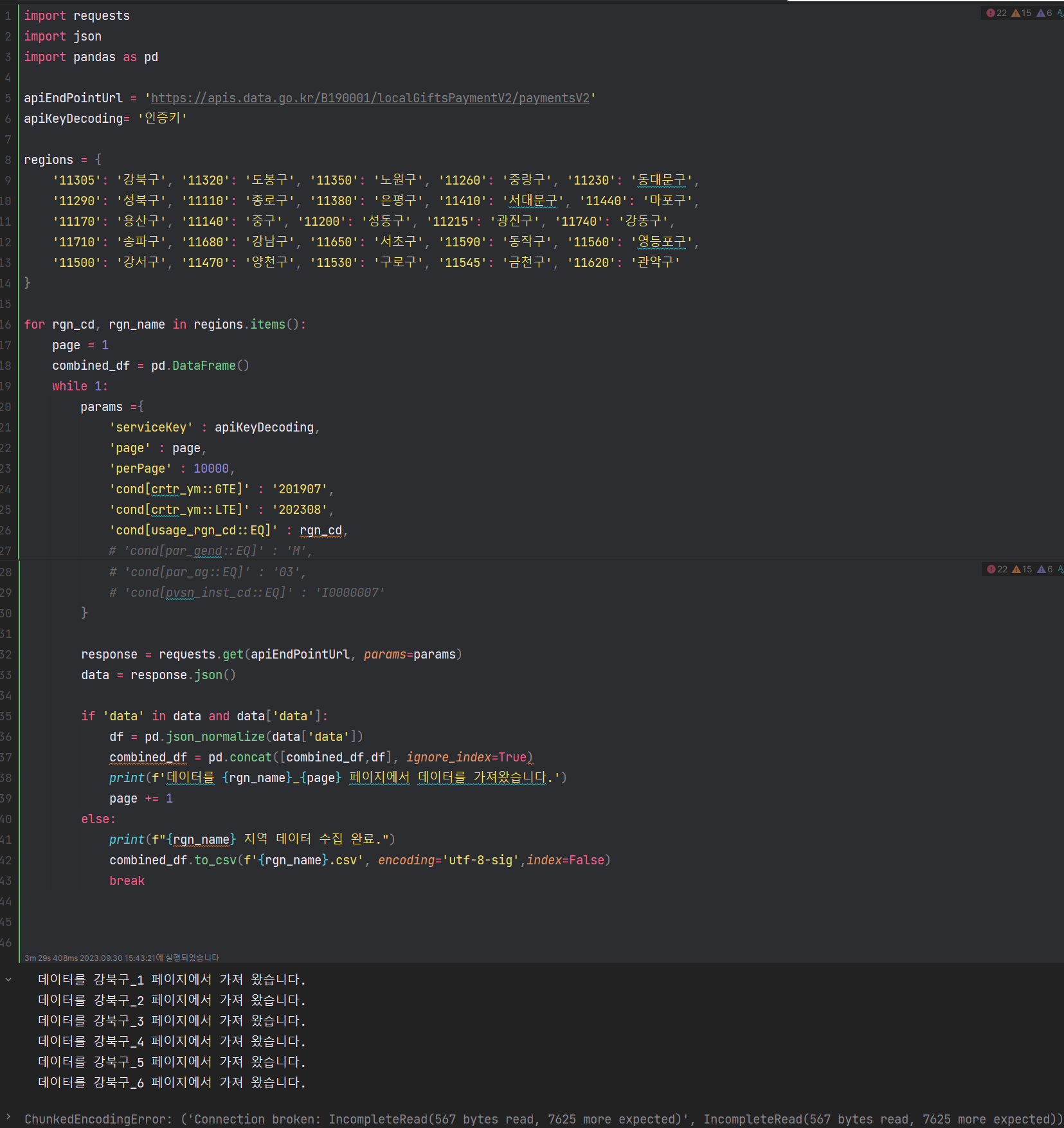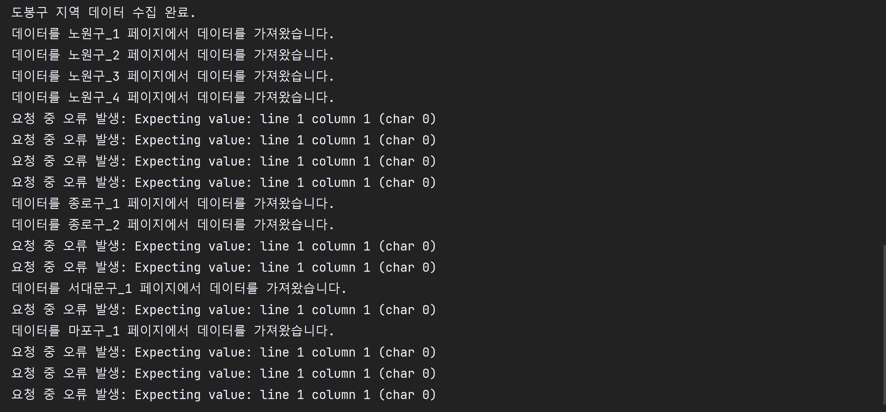 노원구, 종로구, 서대문구에서 오류 발생 해당 구 데이터 수집이 종료됨.