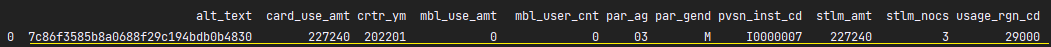 | CARD_USE_AMT | 카드사용금액 | integer |