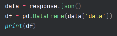 2번처럼 불러온 데이터의 'data' 키로 접근해 그 값을 데이터프레임에 넣으면 목표했던 값들이 데이터프레임에 잘 들어갔음을 알 수 있다.