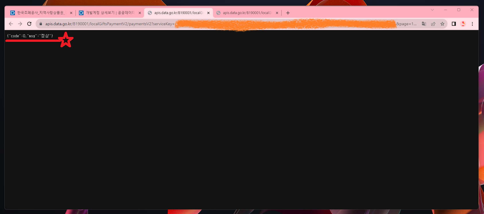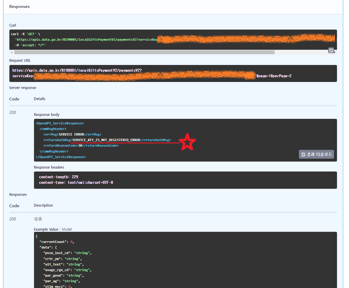 ____★ 보면 "SERVICE_KEY_IS_NOT_REGISTERED_ERROR" 메시지 출력