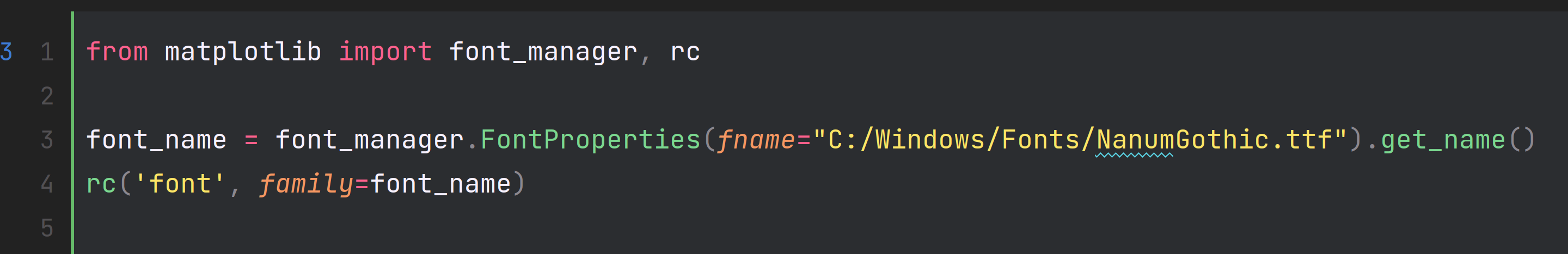 1번째 라인 : 'matplotlib' 라이브러리에서 폰트관리 모듈 ('font_manager' 과 'rc' )을 가지고 옴
