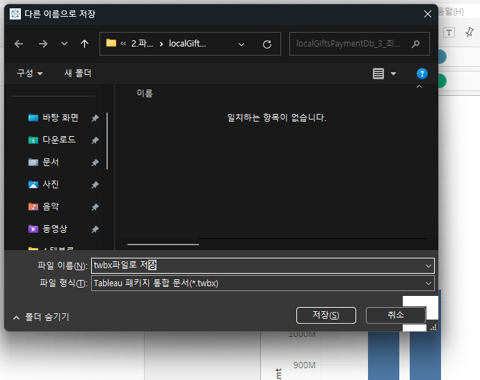 파일 형식 확장자를 .twbx 로 선택하여 로컬에 저장한다.