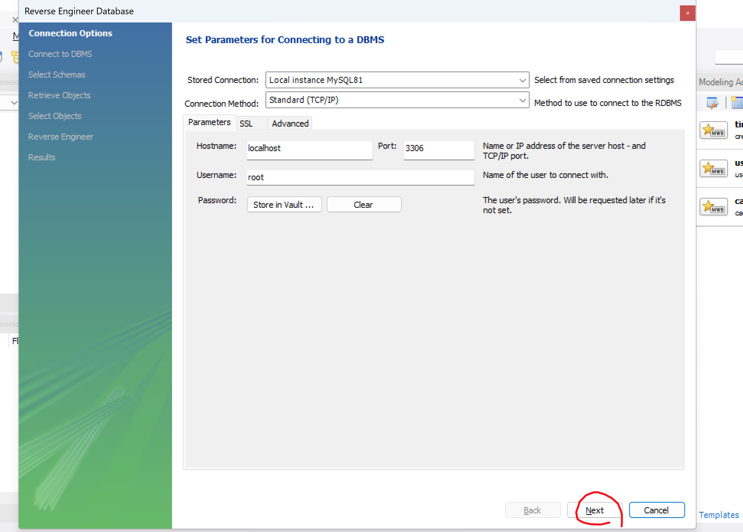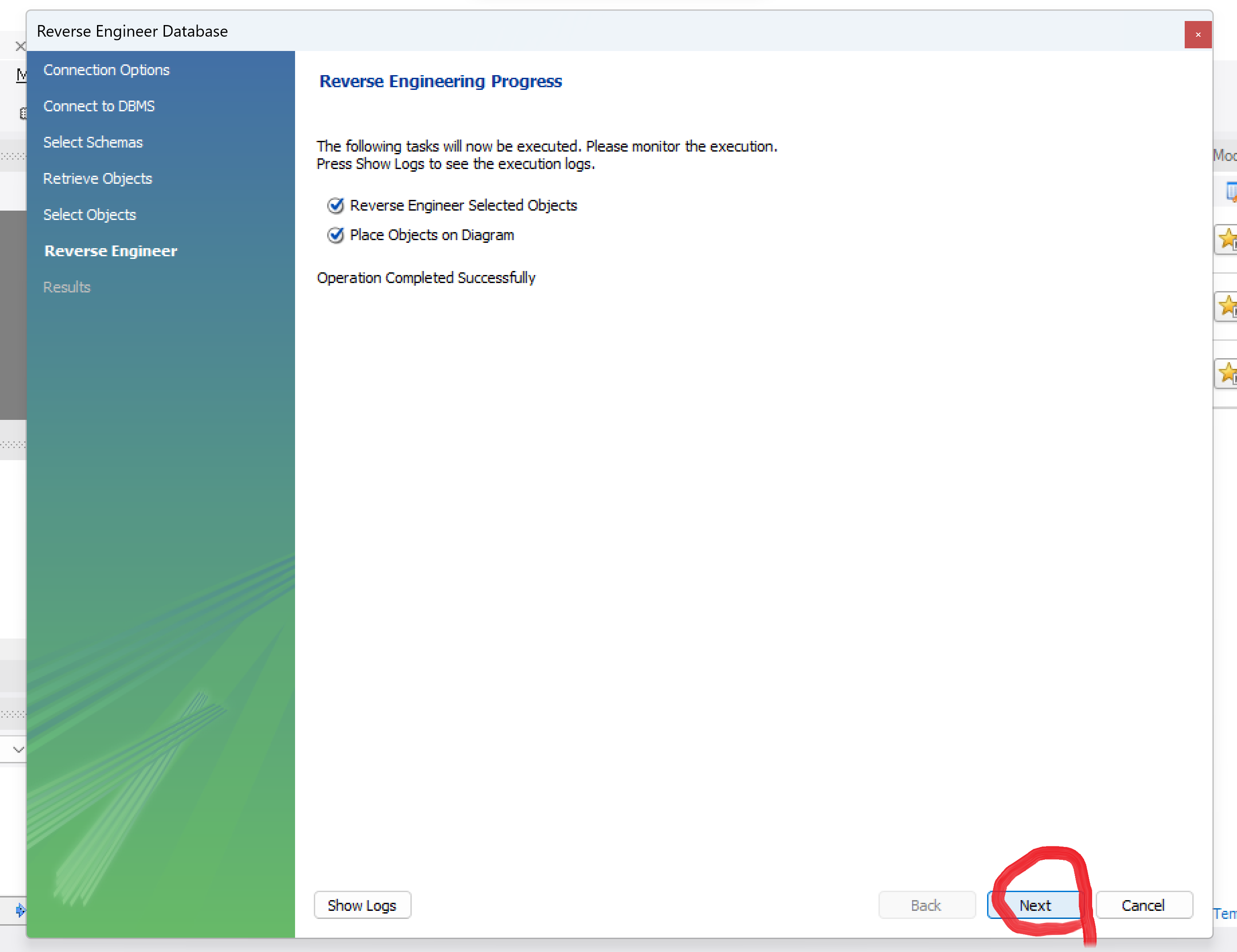 ( or 최상단 리본메뉴 - Database - Reverse Engineer Database )
