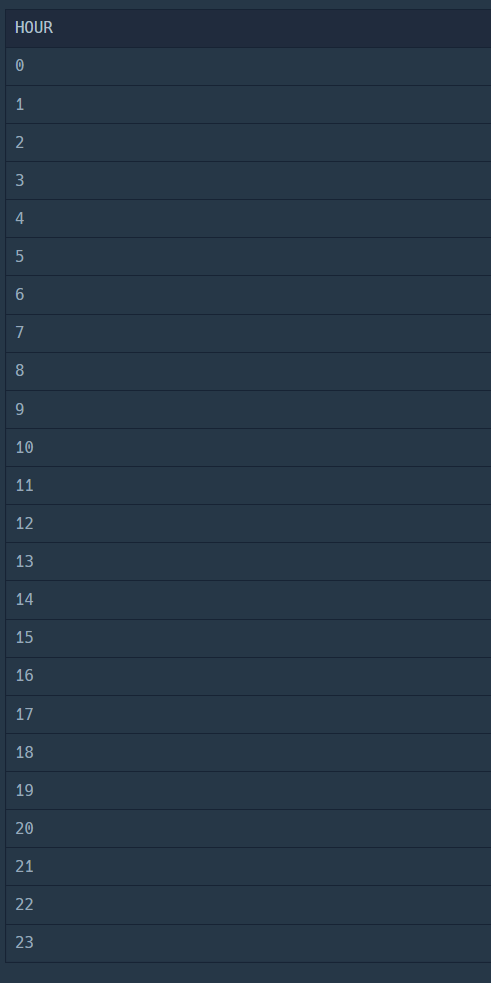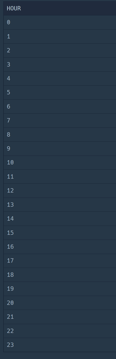 (SELECT (ROW_NUMBER() OVER () - 1) AS HOUR