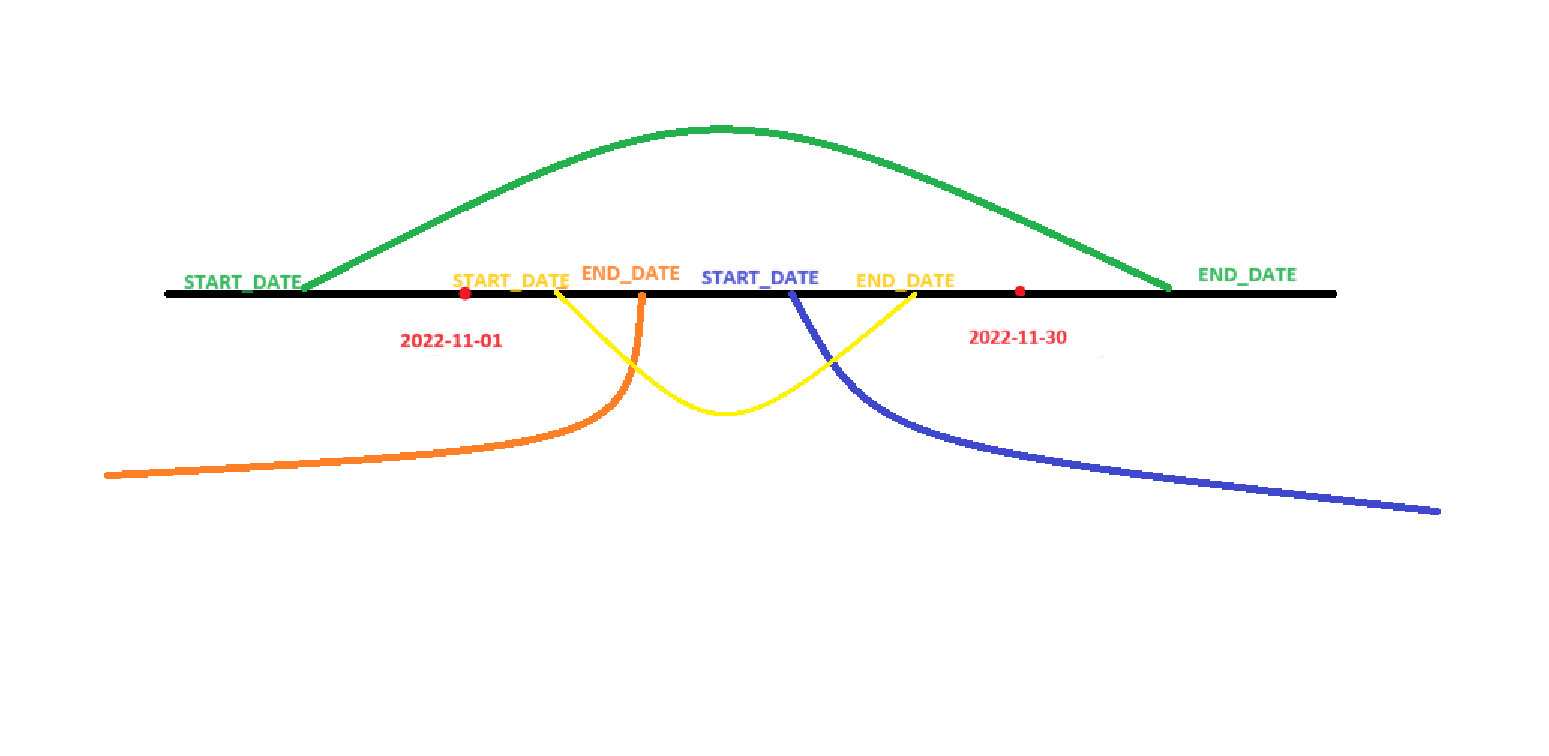 WHERE END_DATE >= '2022-11-1' AND START_DATE <= '2022-11-30')