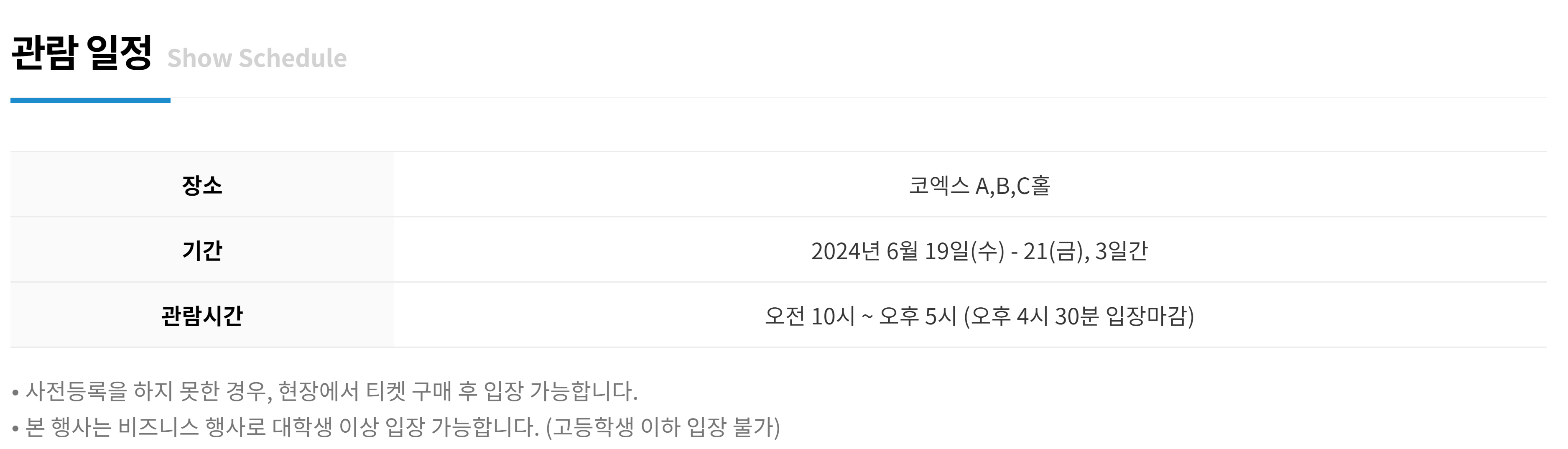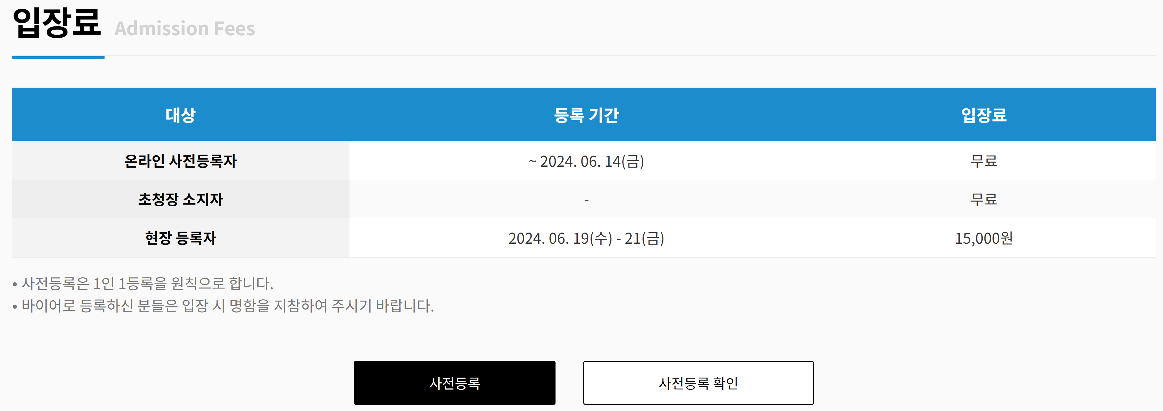사전 등록을 하면 3일 중 1일 무료입장이 가능합니다.