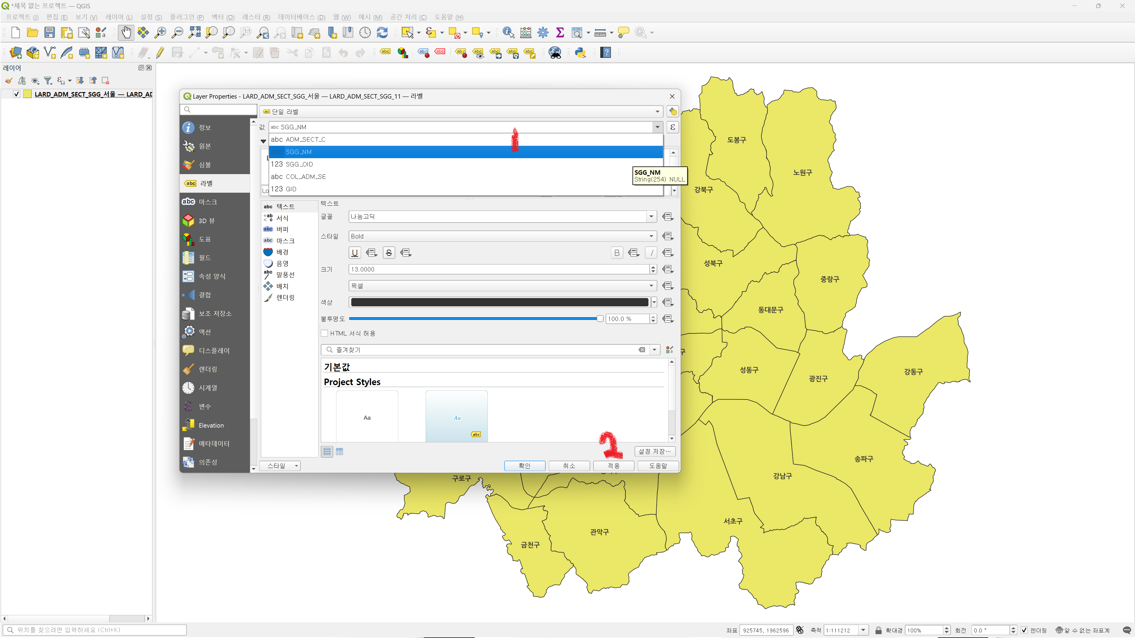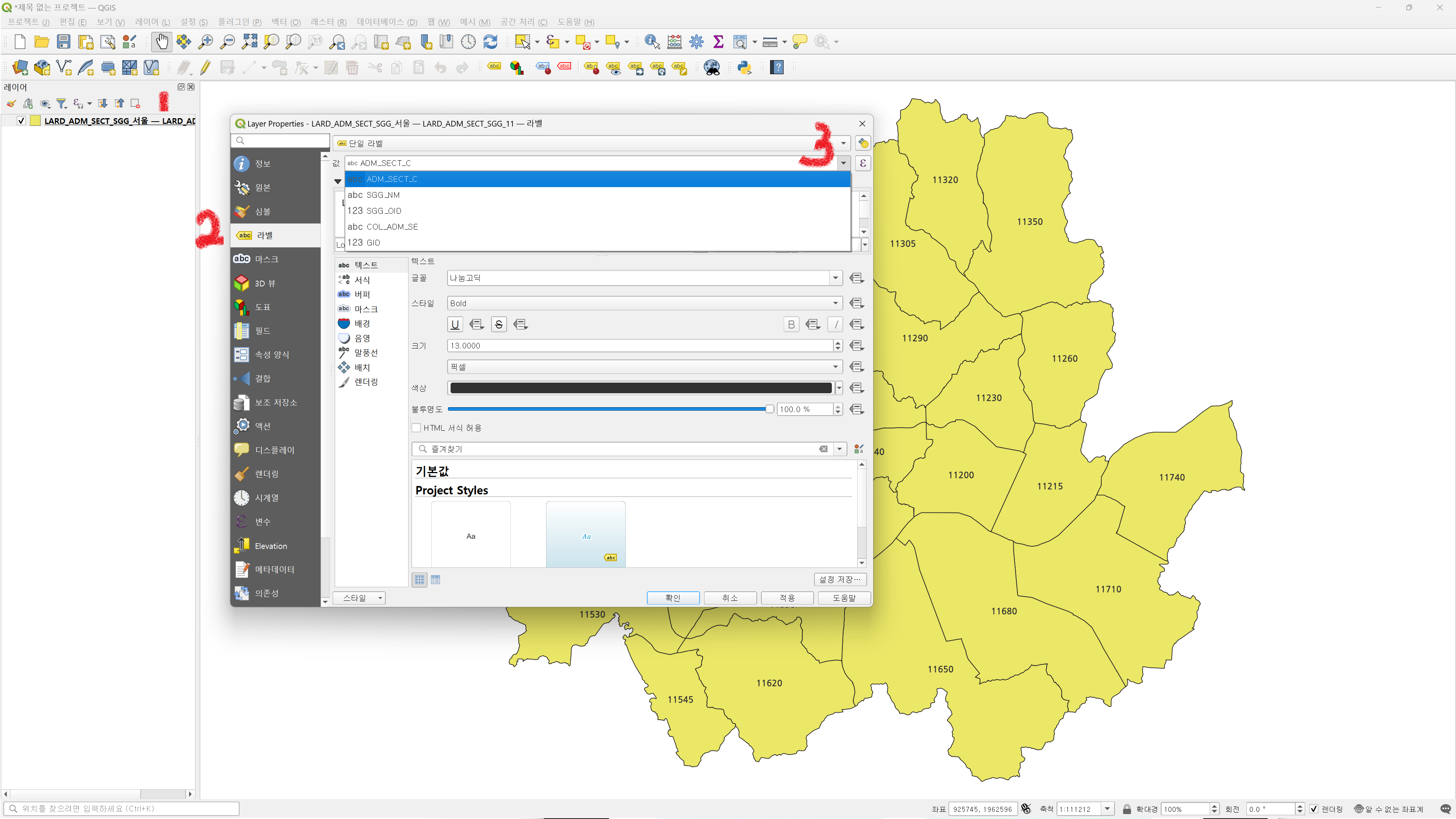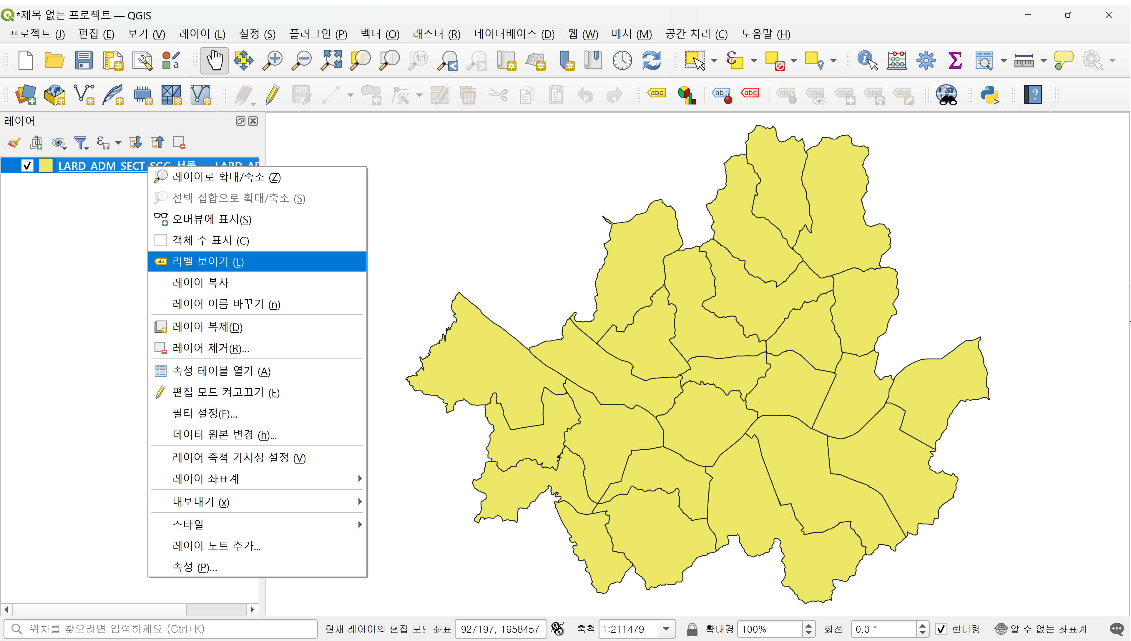 2. 레이블 > 우클릭 > 라벨 보이기 클릭