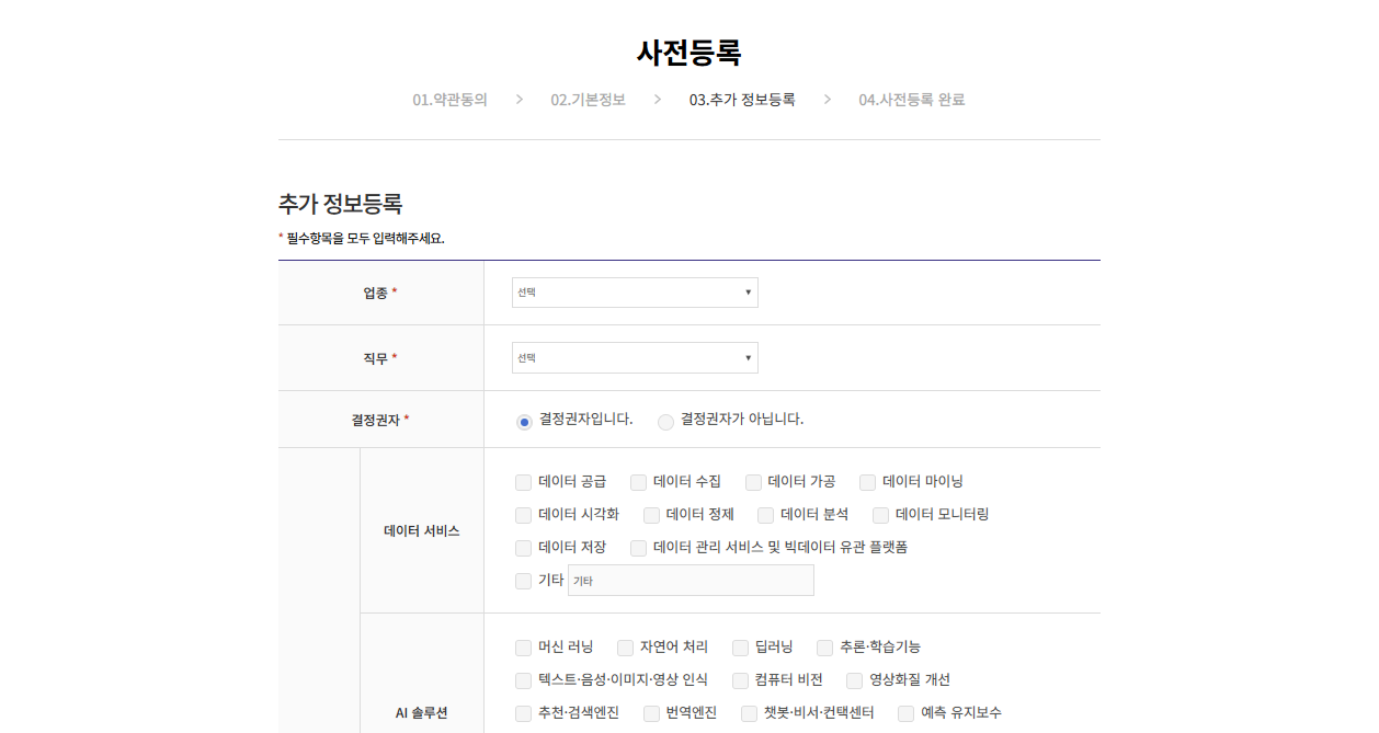 추가 정보 등록 후 사전등록 완료