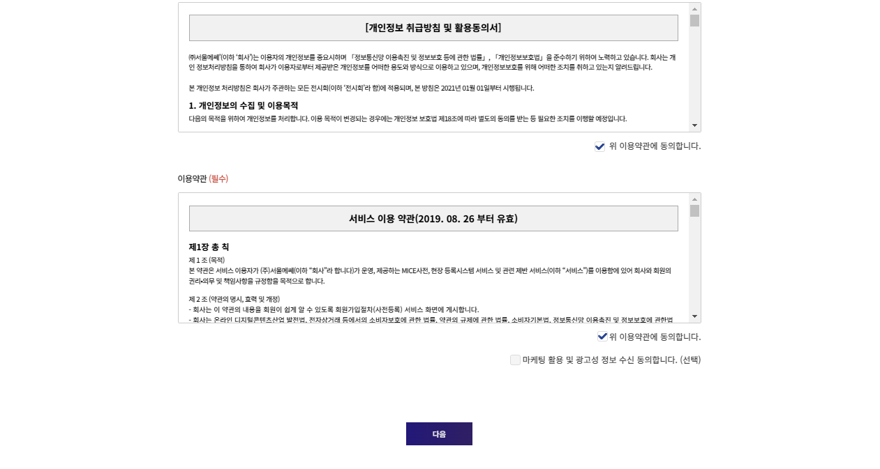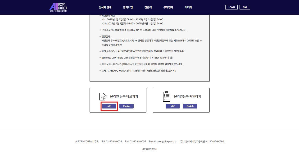 최하단으로 스크롤 - 온라인 등록 바로가기 '국문' 버튼 클릭