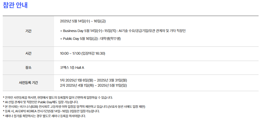 2025년 5월 초 열리는 AI 전시, 박람회를 소개합니다.