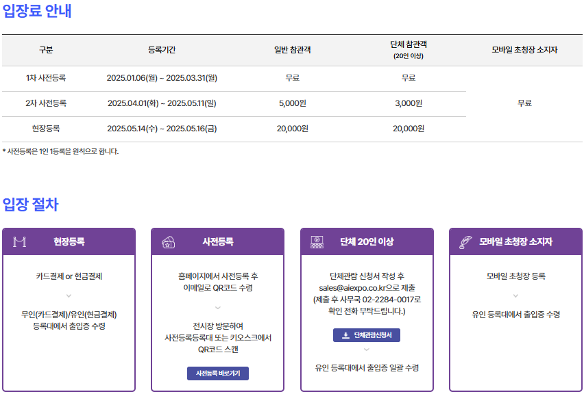 사전 등록을 하면 3일 동안(14일,15일,16일) 무료입장이 가능합니다.