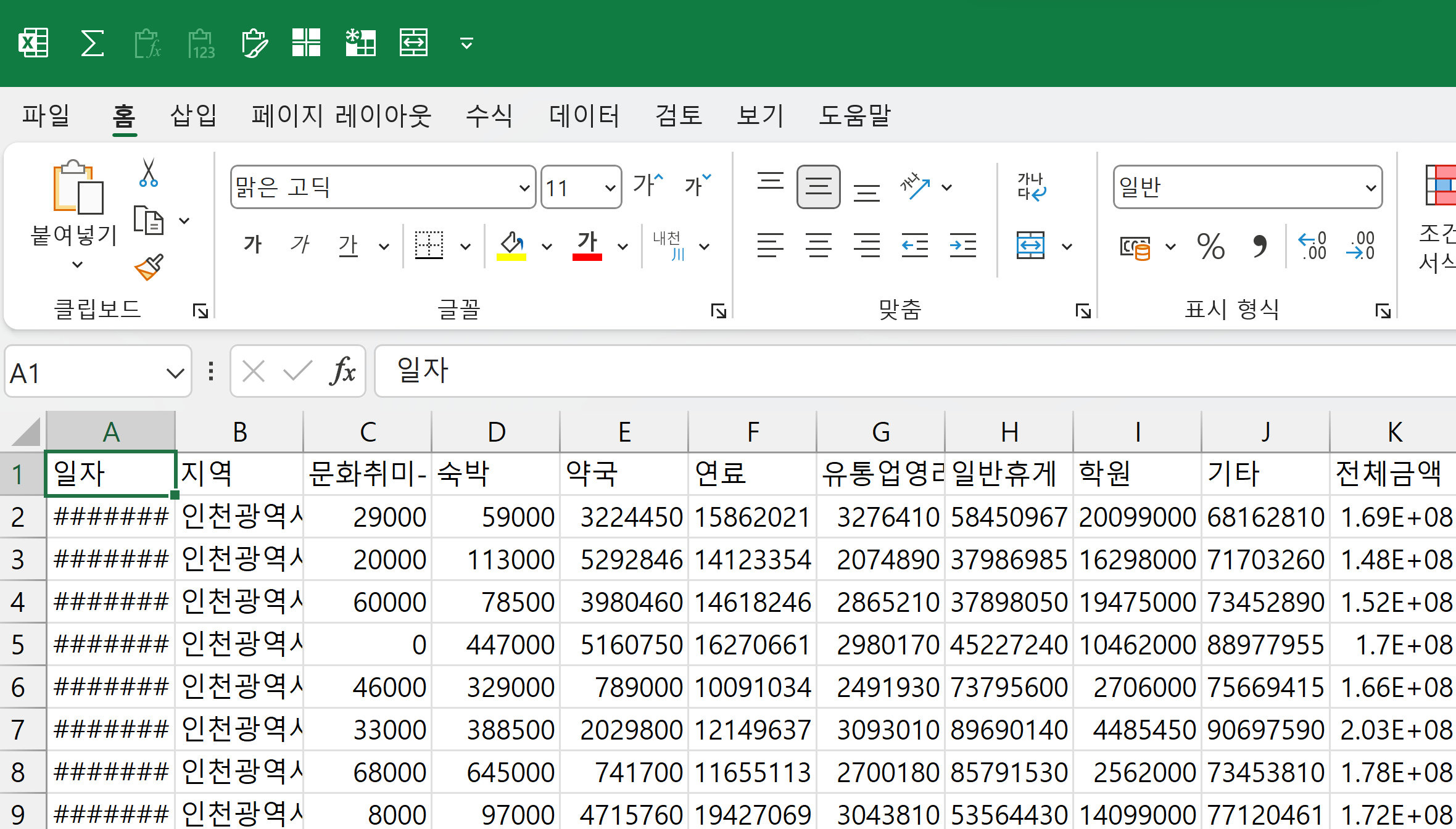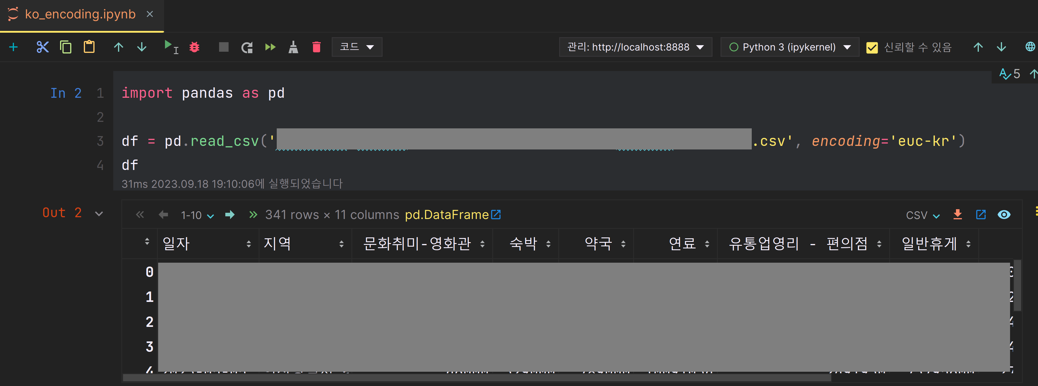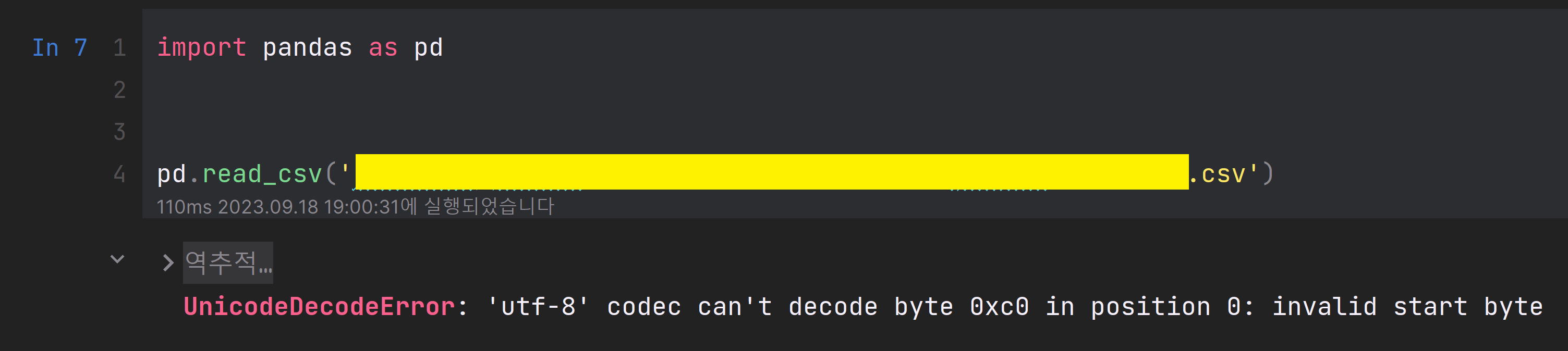 2. 해당 데이터를 주피터 노트북으로 불러왔더니 'utf-8 ~'란 에러 메시지가 뜨고