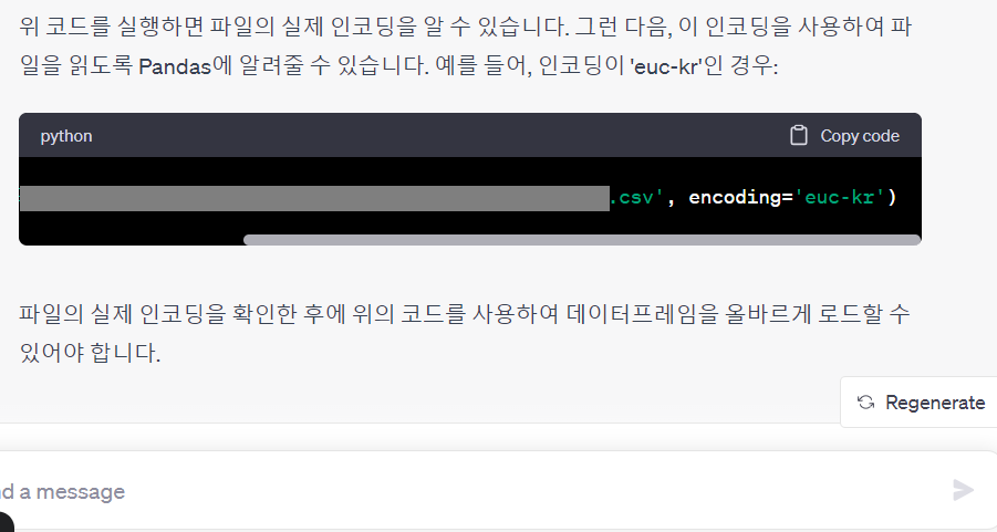 3. Chat-gpt 한테 물어봤더니 저런 또는 저것과 비슷한 encoding=' ' 을 알려주고