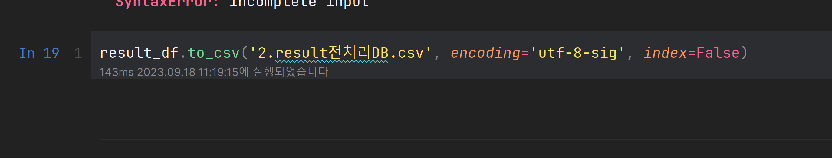 3. 주피터 노트북에서 결과 데이터프레임을 엑셀로 저장할 때
