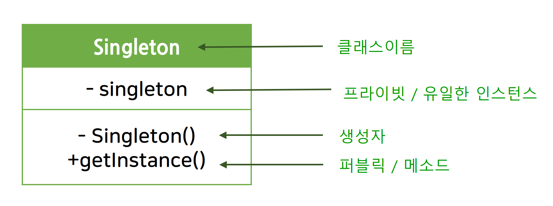 접근 제어자 : - private, + public, * protected, ~ defalut C, C++과 달리 전역변수가 없는 Java.유일한 인스턴스를 만들고 어디서든 참조해 사용할 수 있게 만든다. 기본 싱글톤인스턴스가 처음 요청될 때 생성.구현은 간단하지만 멀티스레드 환경에서 문제 발생할 수 있음public class LazyInitialization { private static LazyInitialization instance; // 유일 객체 private LazyInitialization(){} // 기본 생성자는 public 이기 때문에 private로 명시 // 이는 외부에서 new 키워드를 통해 이 클래스의 인스턴스를 생성하지 못하도록 막습니다. ..